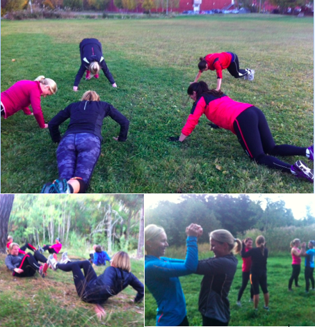 Efter ytterligare jogg stannade vi till vid en backe och körde 5 min baklängeslöpning, riktigt bra och det var länge sedan. – Kul! Vi tog oss vidare med jogg och benen fick lite paus innan deras nästa utmaning, 2×1 min sumosparkar. Går man djup ner i dessa känns alla muskler i benen och rumpan – grymt!