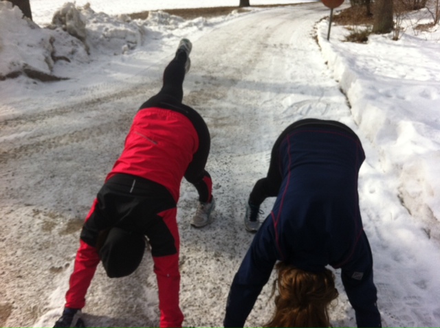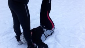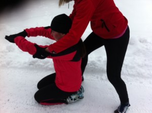 Vi tog oss ner till vägskälet där det blev övningar för armarna. Sittande rodd i par 2×45 sek, skottkärran med indrag i par 4 steg + 1 indrag, 4 steg + 2 indrag osv till 5 indrag, detta gjordes i 3 omgångar. Till nästa pulstopp 6 ruscher på ca 100 m med 8 djupa hopp + jogg tillbaka.