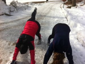Idag var det kyligare, men sol och friskt! Vi joggade bort emot begravningsplatsen, här finns en bra backe…Uppvärmningen fortsatte med samma rörelseserie som passet i onsdags; 2×2 min 10 planklöpning, 10 plankjacks, 10 burpees och 10 squatjacks. Aktivering av bål, rumpa och ben. Därefter backserien: styrkeövningar i kombination av backintervaller. 10 armhävningar -backe 10 rygglyft med armar i 7 min. Kort vila och sedan 10 bålvridningar -back 10 planksteg i 7 min. Bra jobbat, gud vad ni kämpade!!!